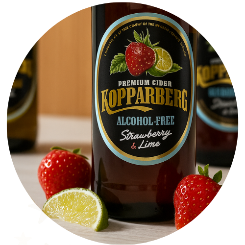 Fresh strawberry with subtle lime. All the pleasure of a fruity cider – with none of the alcohol!